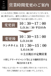 MINATO CAFE の営業時間が2月2日(月)から変わります。